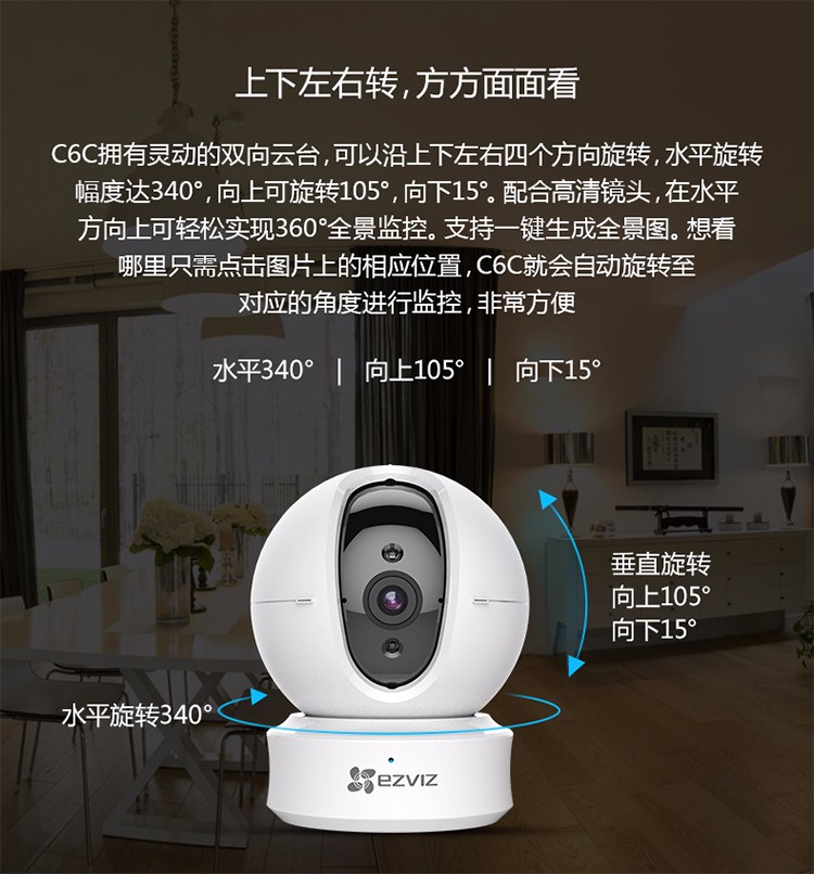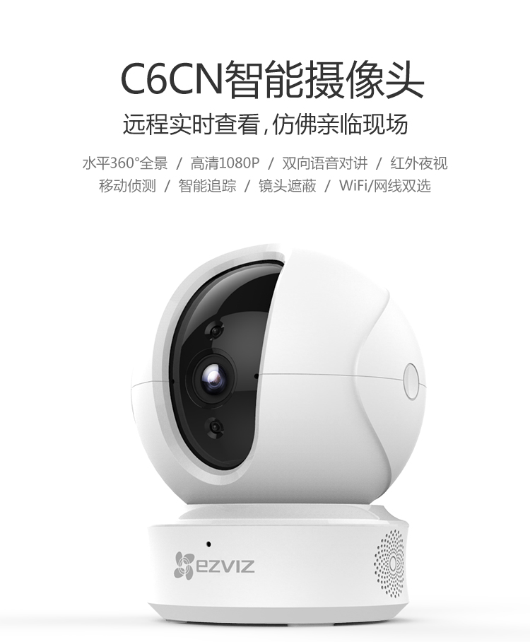 海康螢石C6TC家用云臺(tái)監(jiān)控?cái)z像頭帶移動(dòng)偵測(cè)電話提醒