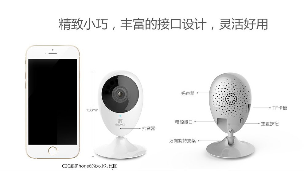 海康螢石C6TC家用云臺監控攝像頭帶移動偵測電話提醒